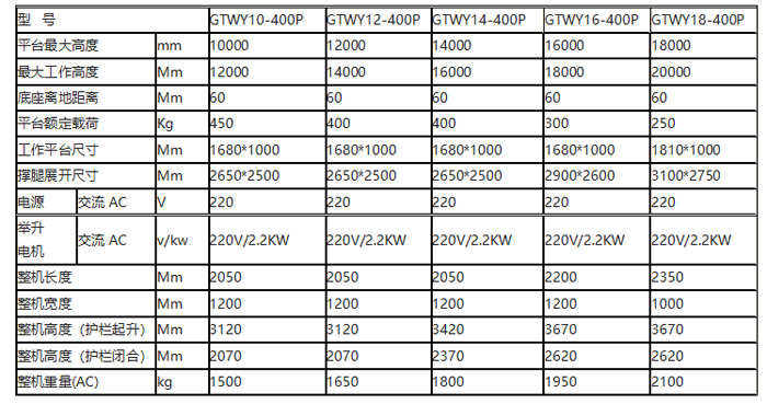 • 工作高度:可選12m、14m、16m、18m、20m